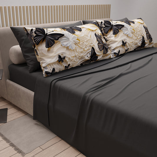 Lenzuola in Cotone, Completo Letto con Federe in Stampa Digitale Mariposa 05 Nero