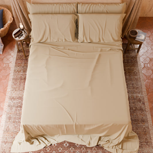 Lenzuola Matrimoniali, Singole, Una Piazza e Mezza, in Cotone, Beige