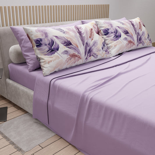 Lenzuola in Cotone, Completo Letto con Federe in Stampa Digitale Palmwater Lilla