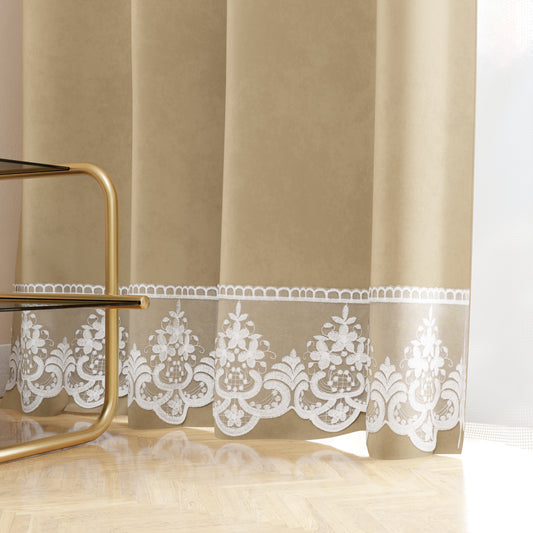 Tenda a Pannello in Velluto per Interni con Anelli e Pizzo Rebrodè, 140x280 cm, Panna by Sissy