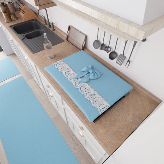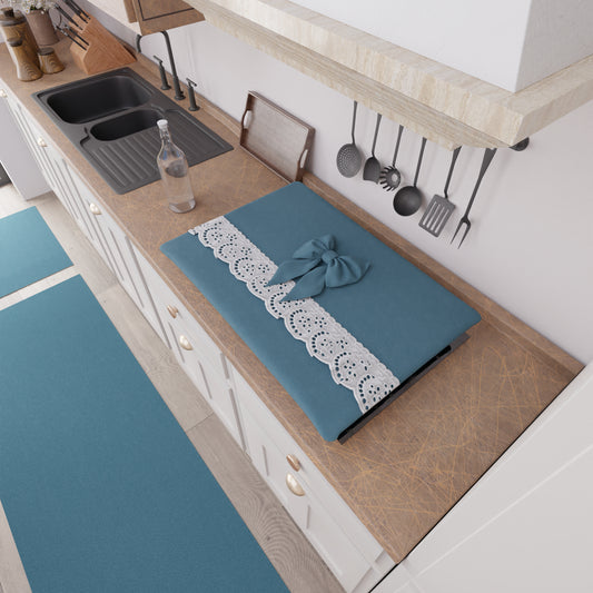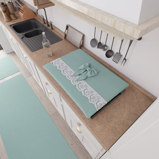 • Shabby Chic Stove Cover with Lace and Teal Bow