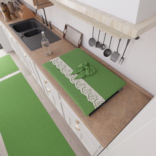 • Shabby Chic Stove Cover with Lace and Green Bow