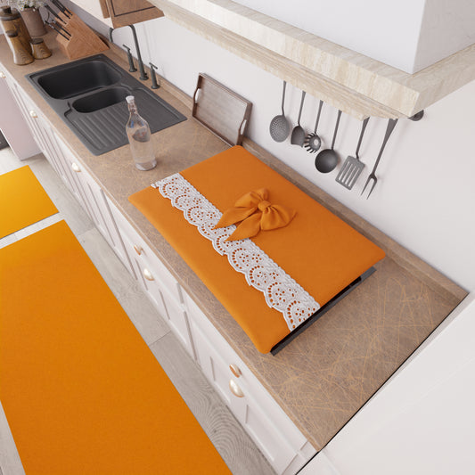 • Shabby Chic Stove Cover with Lace and Yellow Bow