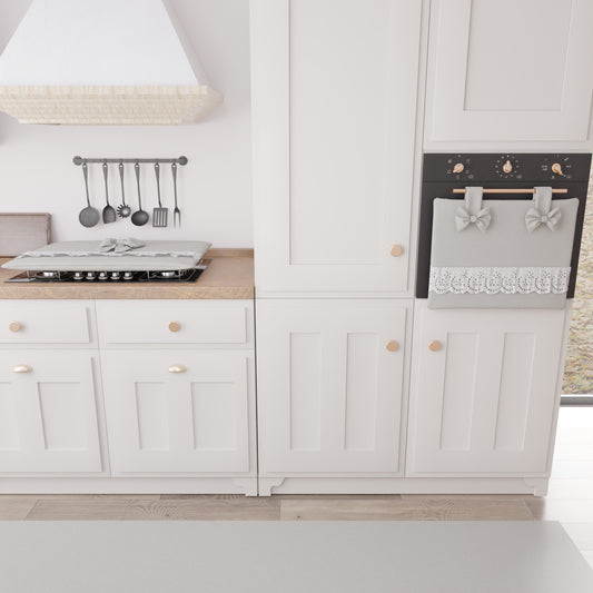 • Shabby Chic Stove Cover with Lace and Light Gray Bow