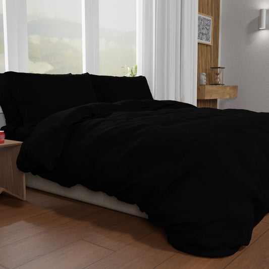 Double Duvet Cover, Duvet Cover and Pillowcases, Solid Color Black