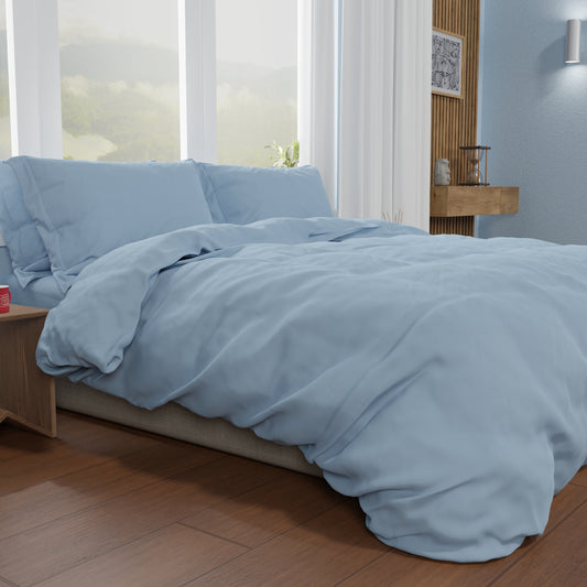 Double Duvet Cover, Duvet Cover and Pillowcases, Light Blue Solid Color