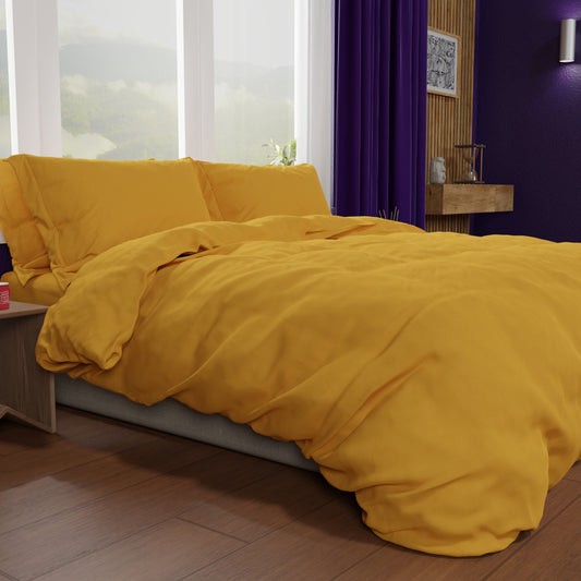 Double Duvet Cover, Duvet Cover and Pillowcases, Plain Ocher Yellow