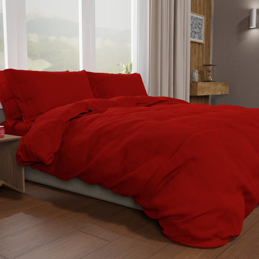 Double Duvet Cover, Duvet Cover and Pillowcases, Solid Color Red