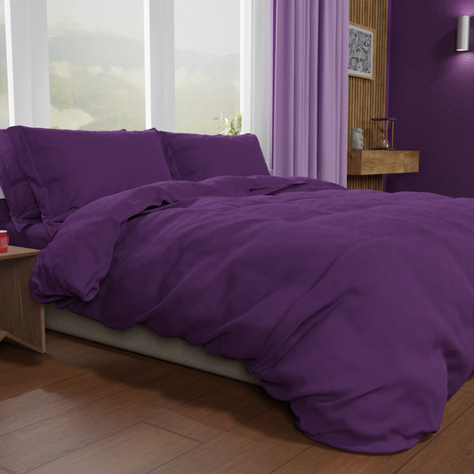 Double Duvet Cover, Duvet Cover and Pillowcases, Solid Color Purple