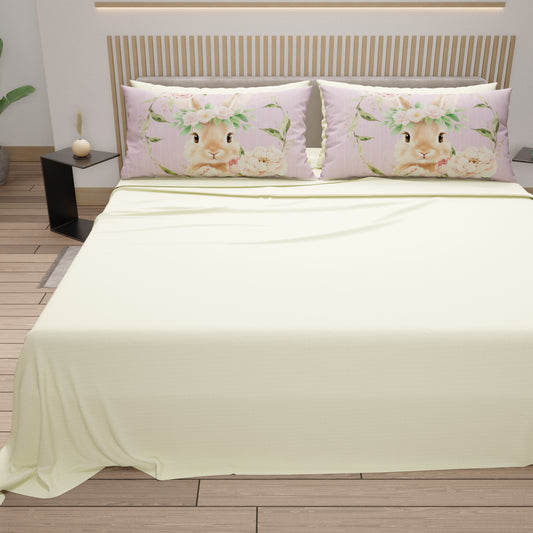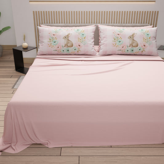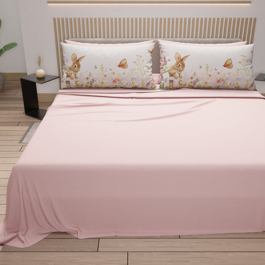 Lenzuola Pasqua in Cotone, Completo Letto con Federe in Stampa Digitale, Bunny Garden Cipria