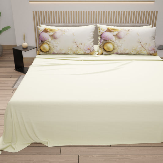 Lenzuola Pasqua in Cotone, Completo Letto con Federe in Stampa Digitale, Chérie Panna