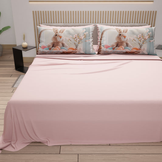 Lenzuola Pasqua in Cotone, Completo Letto con Federe in Stampa Digitale, Little Bunny Cipria