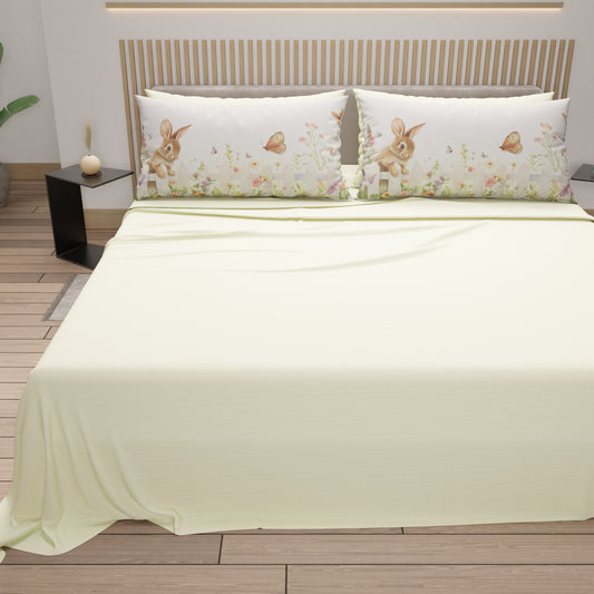 Lenzuola Pasqua in Cotone, Completo Letto con Federe in Stampa Digitale, Bunny Garden Panna