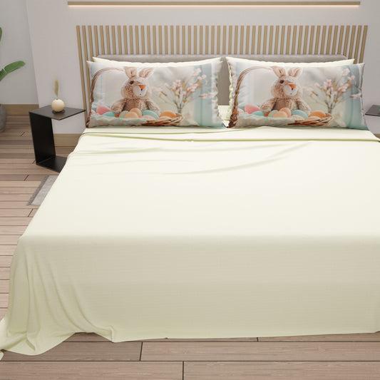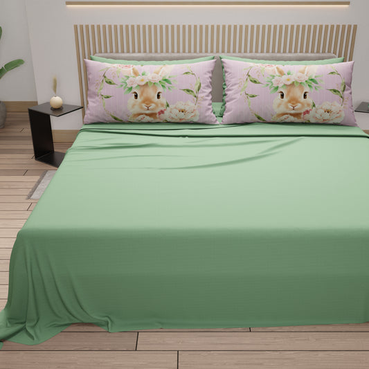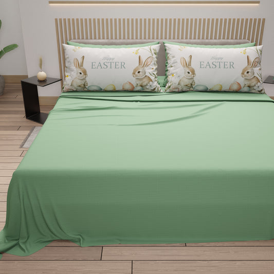 Lenzuola Pasqua in Cotone, Completo Letto con Federe in Stampa Digitale, Sweet Bunny Salvia