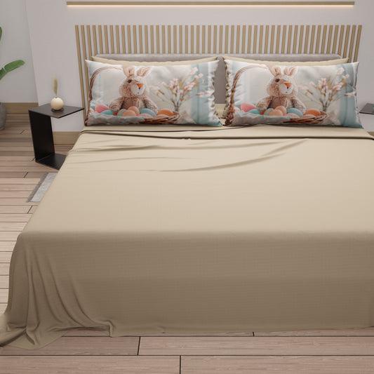 Lenzuola Pasqua in Cotone, Completo Letto con Federe in Stampa Digitale, Bunny Toy Beige