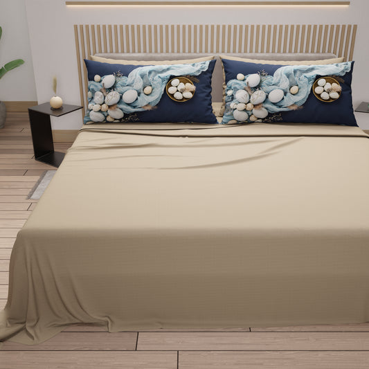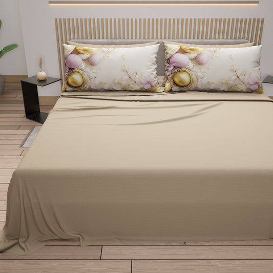Lenzuola Pasqua in Cotone, Completo Letto con Federe in Stampa Digitale, Golden Egg Cipria