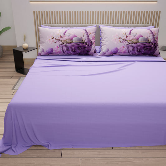 Lenzuola Pasqua in Cotone, Completo Letto con Federe in Stampa Digitale, Cute Basket Lilla