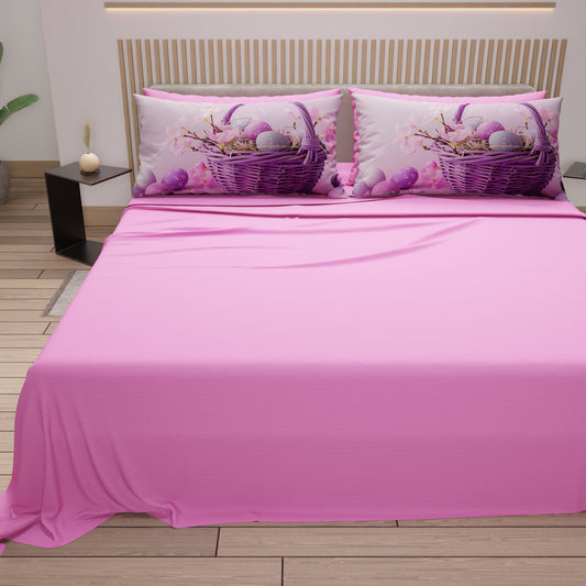 Lenzuola Pasqua in Cotone, Completo Letto con Federe in Stampa Digitale, Cute Basket Rosa