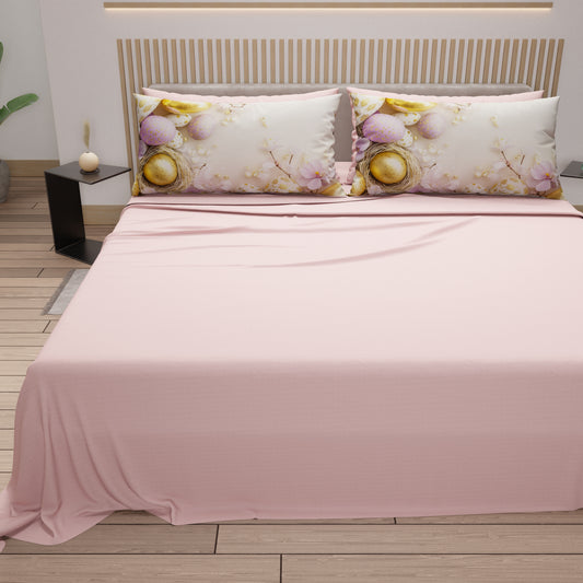 Lenzuola Pasqua in Cotone, Completo Letto con Federe in Stampa Digitale, Chérie Cipria
