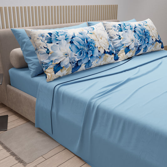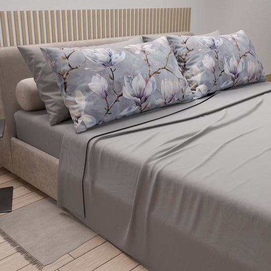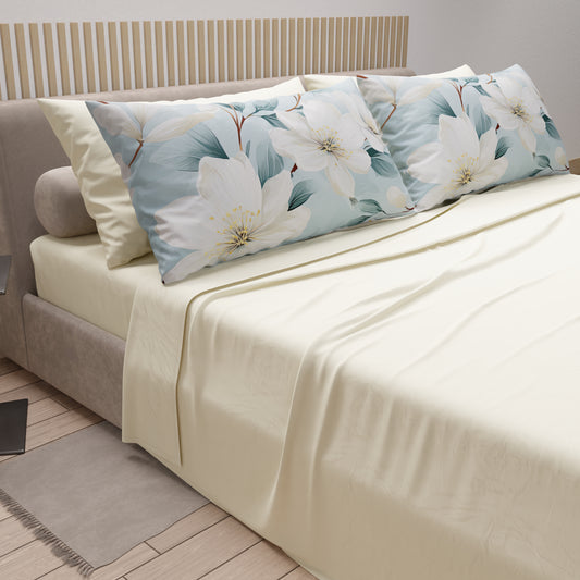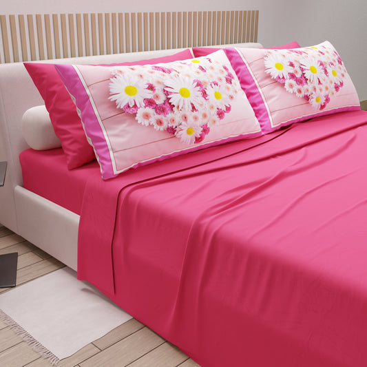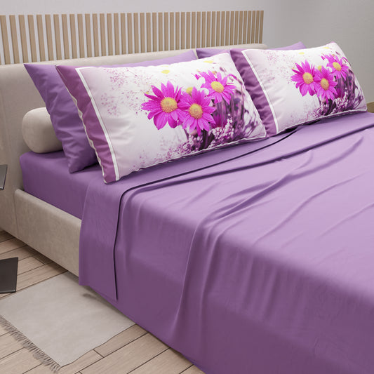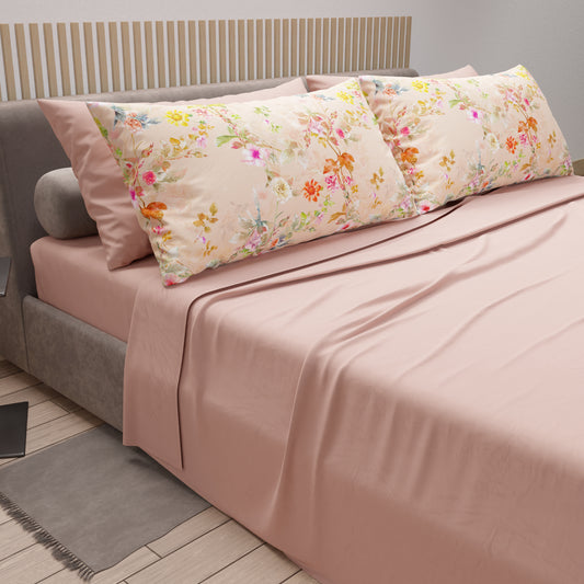 Cotton Sheets, Bed Set with Spring Powder Digital Print Pillowcases