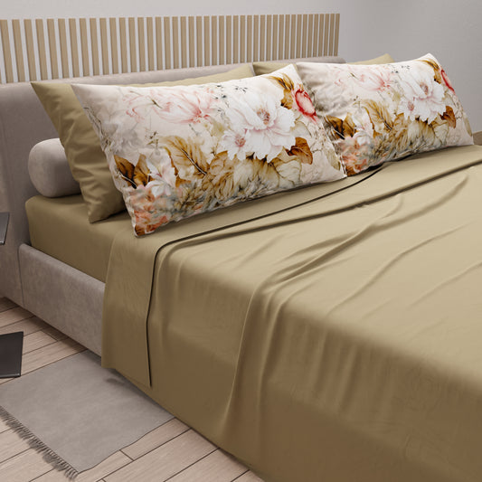 Cotton Sheets, Bed Set with World Beige Digital Print Pillowcases