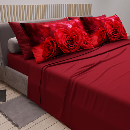 Lenzuola in Cotone, Completo Letto con Federe in Stampa Digitale Wedding Flower