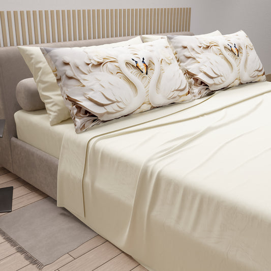 Lenzuola in Cotone, Completo Letto con Federe in Stampa Digitale Cigni