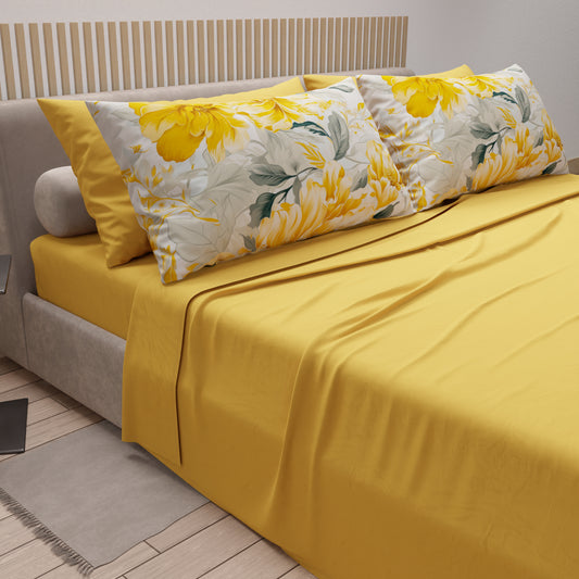 Lenzuola in Cotone, Completo Letto con Federe in Stampa Digitale Floreale 04-143