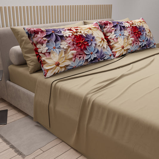Lenzuola in Cotone, Completo Letto con Federe in Stampa Digitale Floreale 110