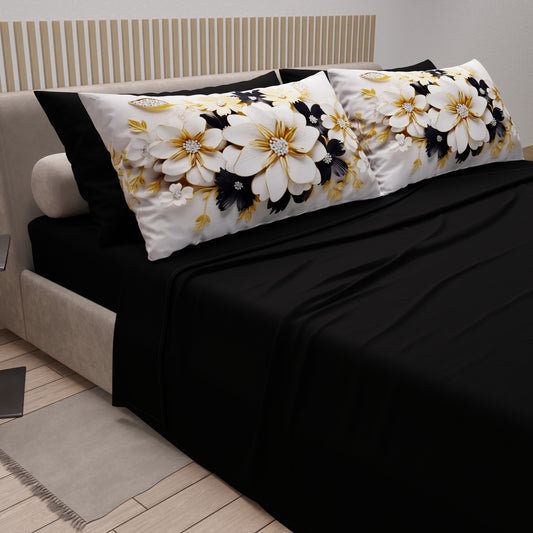Lenzuola in Cotone, Completo Letto con Federe in Stampa Digitale Flower Ceramic Nero