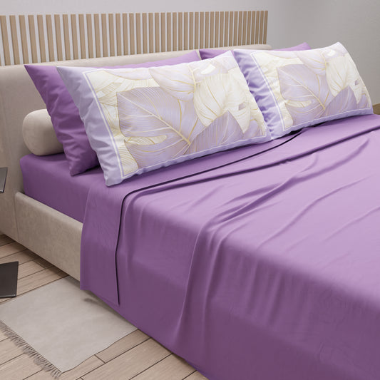 Cotton Sheets, Bed Set with Tropical Lilac-Gold Digital Print Pillowcases