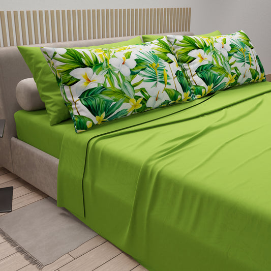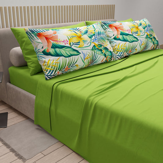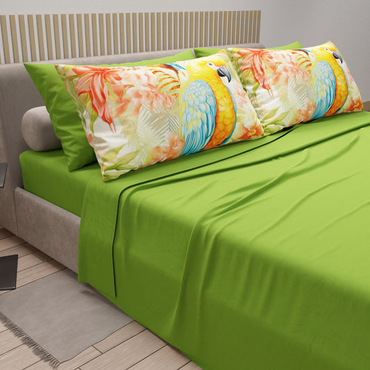 Cotton Sheets, Bed Set with Tropical Multicolor Digital Print Pillowcases