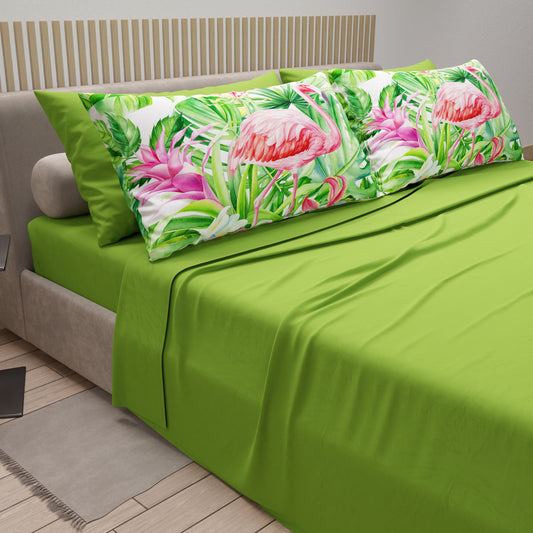 Lenzuola in Cotone, Completo Letto con Federe in Stampa Digitale Flamingo