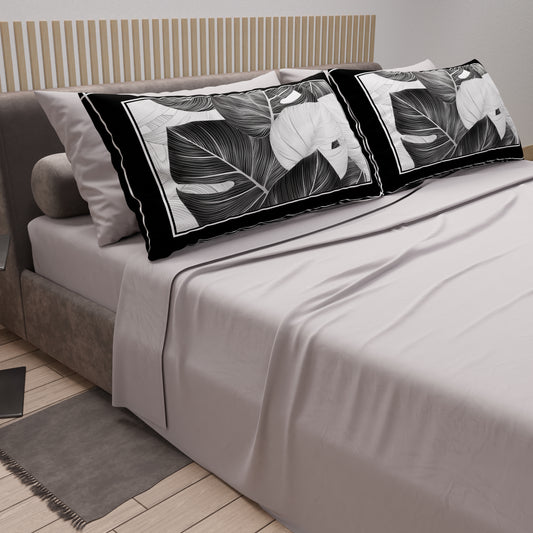 Cotton Sheets, Bed Set with Pillowcases in Black-Silver Tropical Digital Print