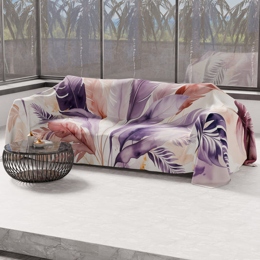 Telo Arredo Copridivano, Copriletto, Copritavolo e Copritutto in Microfibra | Fantasia Palmwater Lilla