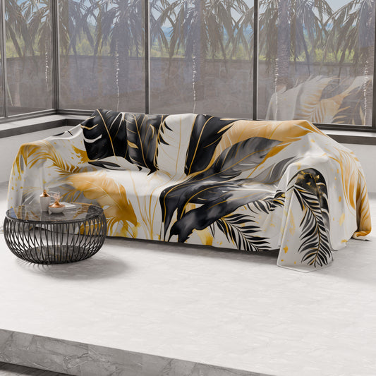Telo Arredo Copridivano, Copriletto, Copritavolo e Copritutto in Microfibra | Fantasia Palmwater Nero