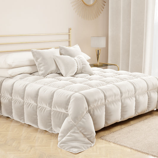 Quilt, Double Sided Winter Quilt in Soft and Warm Light Gray Velvet