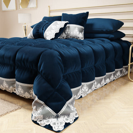 Trapunta Invernale in Morbido e Caldo Velluto e Balza con Pizzo Rebrodè Blu By Sissy
