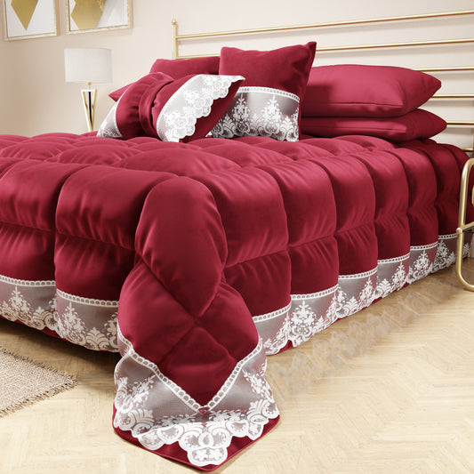 Trapunta Invernale in Morbido e Caldo Velluto e Balza con Pizzo Rebrodè Bordeaux By Sissy