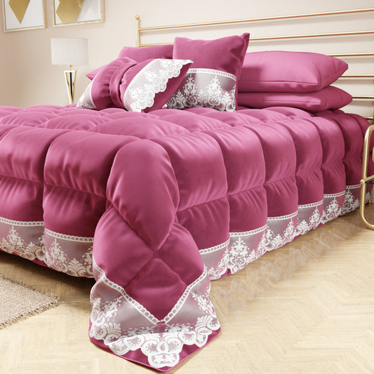 Trapunta Invernale in Morbido e Caldo Velluto e Balza con Pizzo Rebrodè Fucsia By Sissy