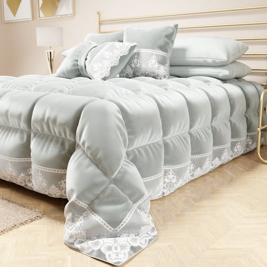 Trapunta Invernale in Morbido e Caldo Velluto e Balza con Pizzo Rebrodè Grigio Chiaro By Sissy