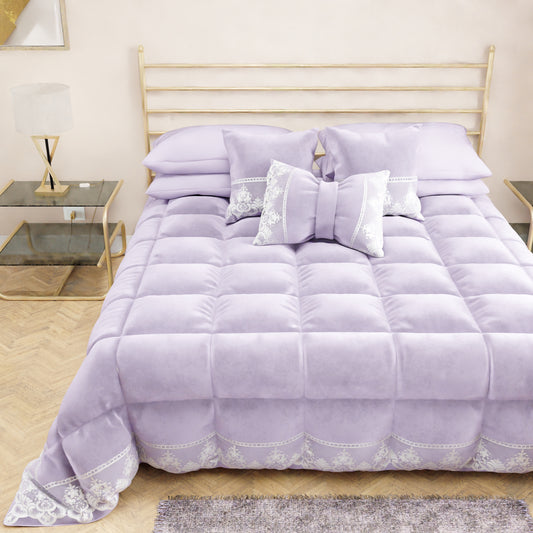 Trapunta Invernale in Morbido e Caldo Velluto e Balza con Pizzo Rebrodè Lilla By Sissy
