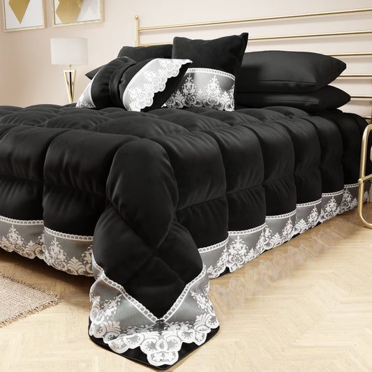 Trapunta Invernale in Morbido e Caldo Velluto e Balza con Pizzo Rebrodè Nero By Sissy