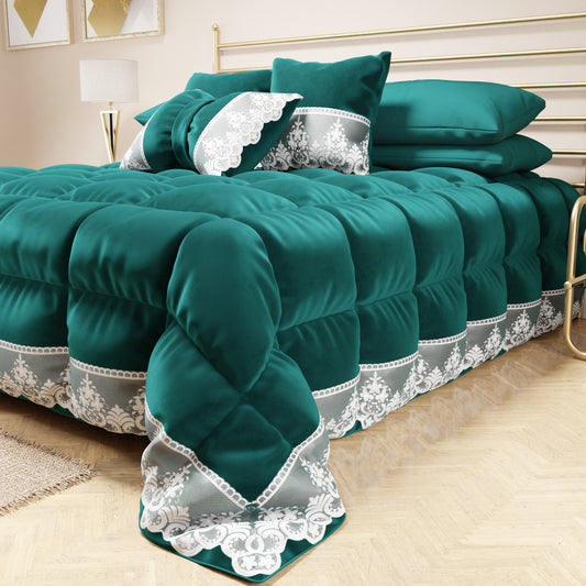 Trapunta Invernale in Morbido e Caldo Velluto e Balza con Pizzo Rebrodè Oro By Sissy