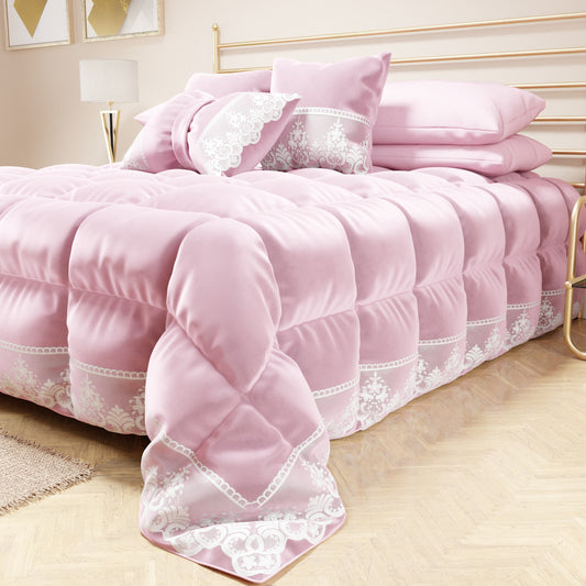 Trapunta Invernale in Morbido e Caldo Velluto e Balza con Pizzo Rebrodè Rosa By Sissy