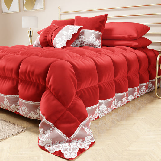 Trapunta Invernale in Morbido e Caldo Velluto e Balza con Pizzo Rebrodè Rosso By Sissy