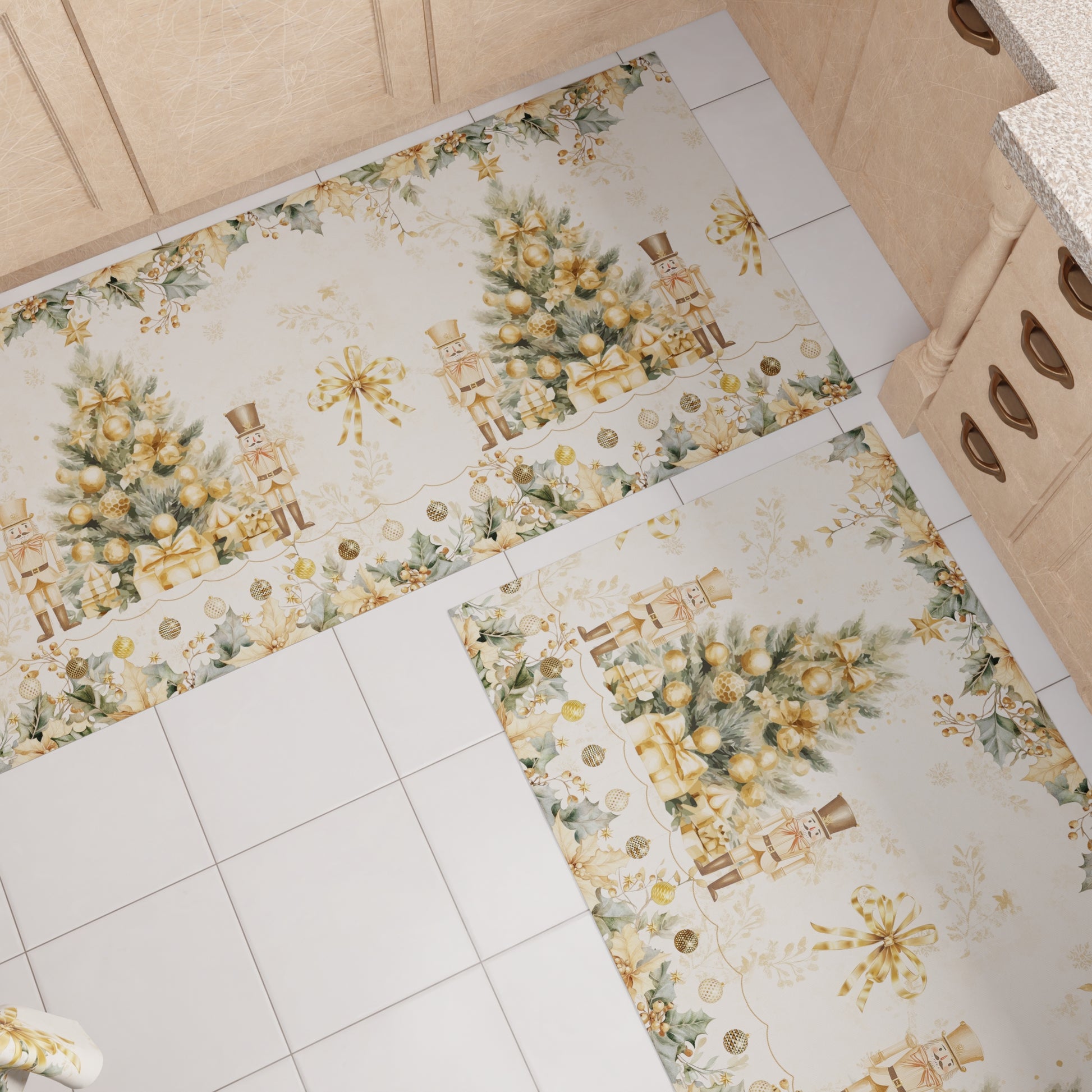 Tappeto Cucina Natalizio Antiscivolo Passatoia Natalizia Cucina lavabile Xmas Gold