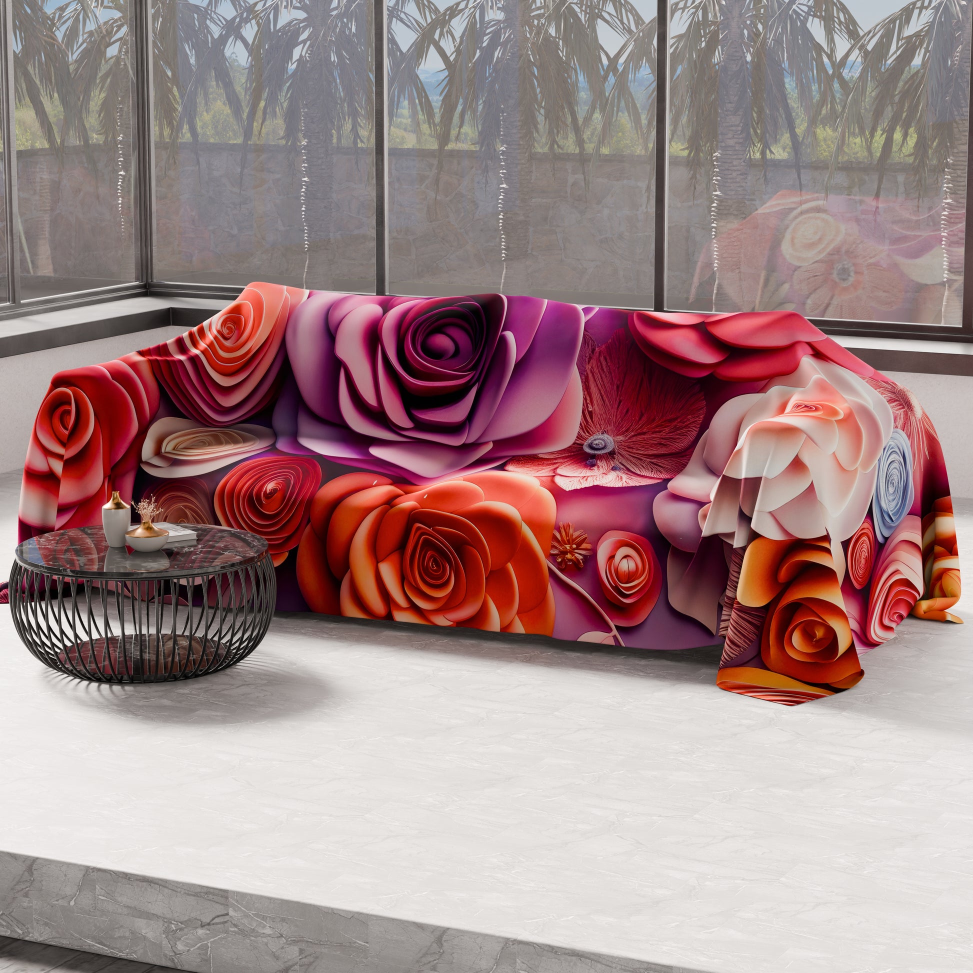 Telo Arredo Copridivano, Copriletto, Copritavolo e Copritutto in Microfibra | Fantasia Floreale 05-17