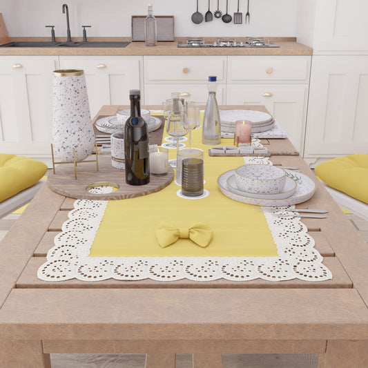 Chemin de table élégant Shabby Chic avec dentelle jaune et nœuds