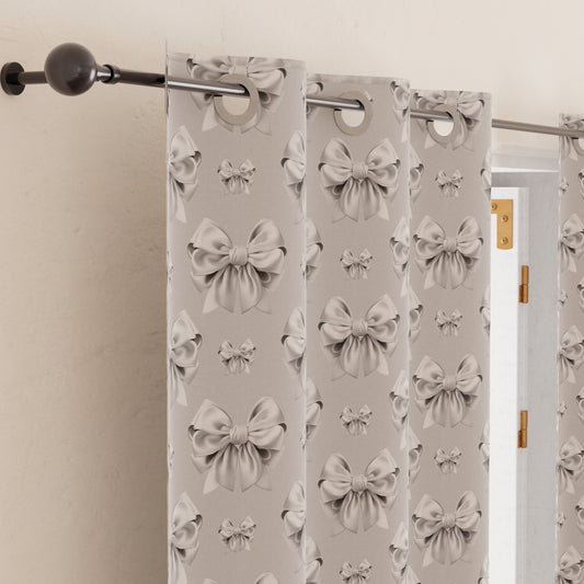 Rideau d'ameublement d'intérieur en panneaux avec anneaux à nœuds gris
